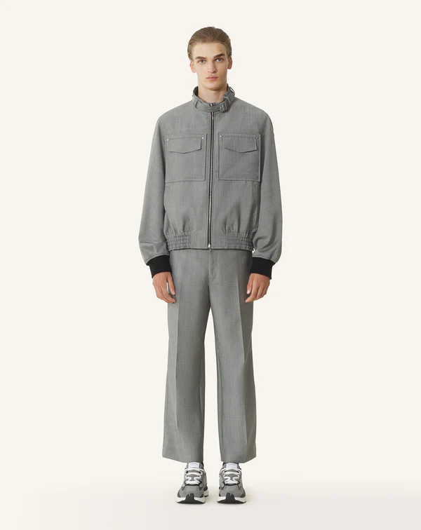 - 71% laine vierge tissée, 2% elasthanne tricoté, 27% mohair tissé