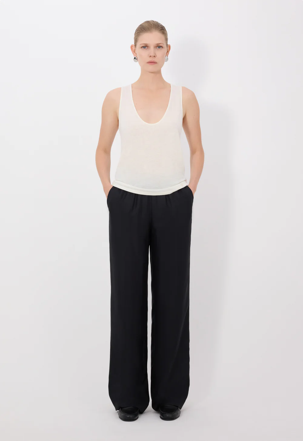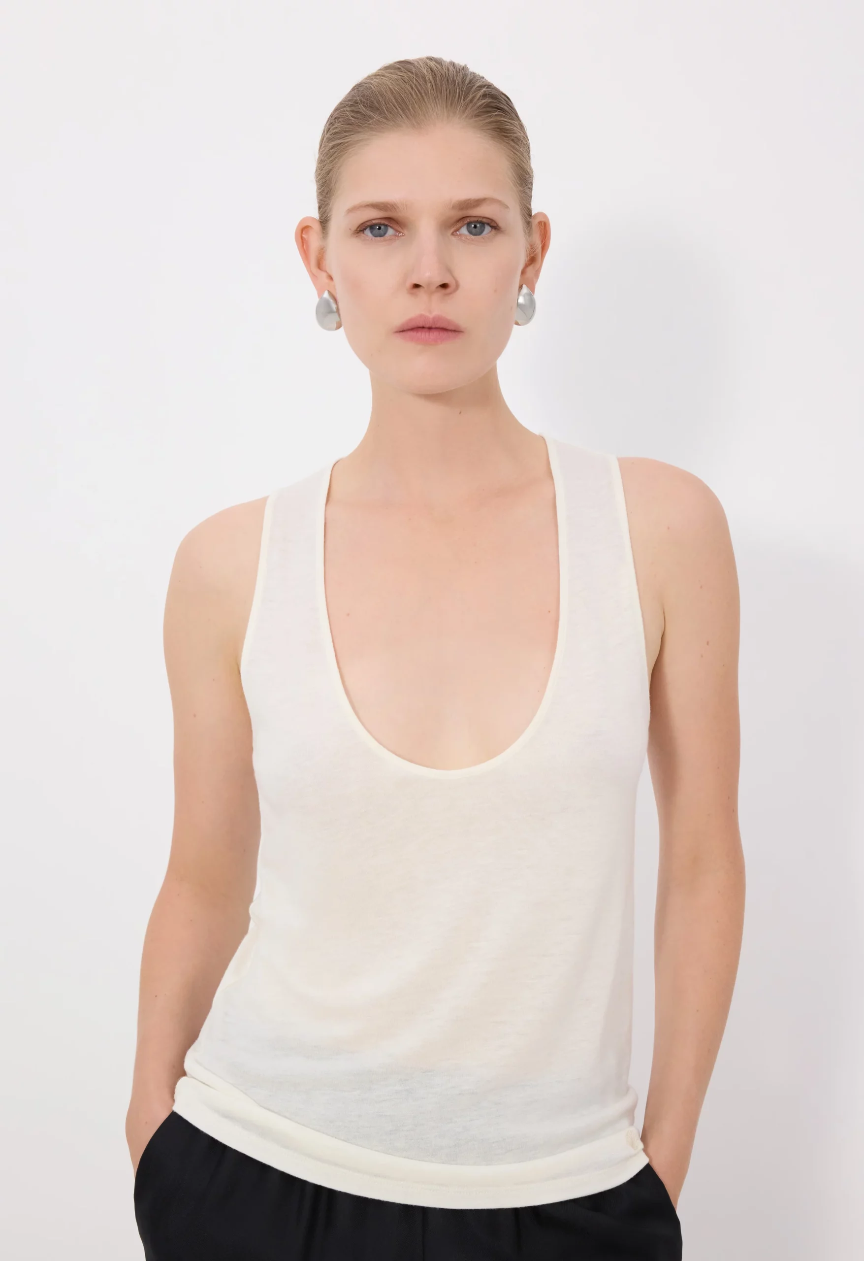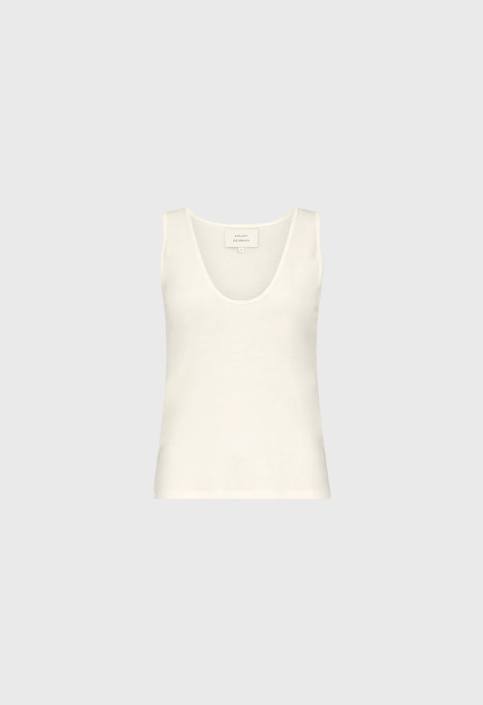 Ce débardeur blanc by Loulou de Saison est réalisé en jersey fin de laine mélangée. Un col U et des fines bretelles accentuent sa texture fluide et dynamique, faisant de lui un basique élégant et versatile.