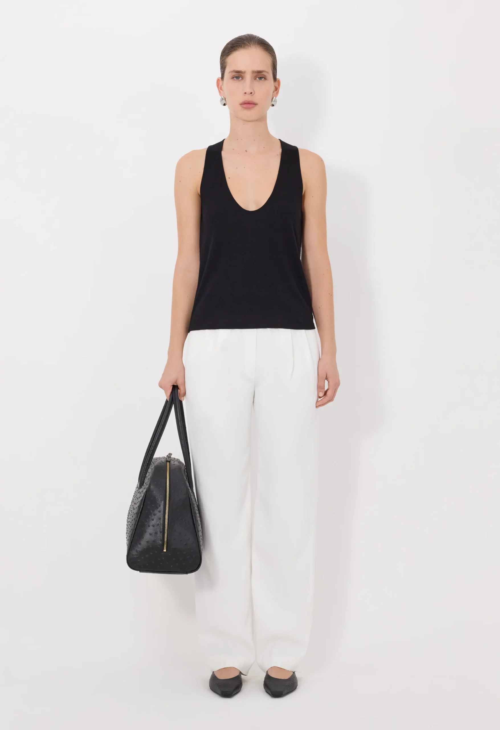 Ce débardeur noir by Loulou de Saison est réalisé en jersey fin de laine mélangée. Un col U et des fines bretelles accentuent sa texture fluide et dynamique, faisant de lui un basique élégant et versatile.