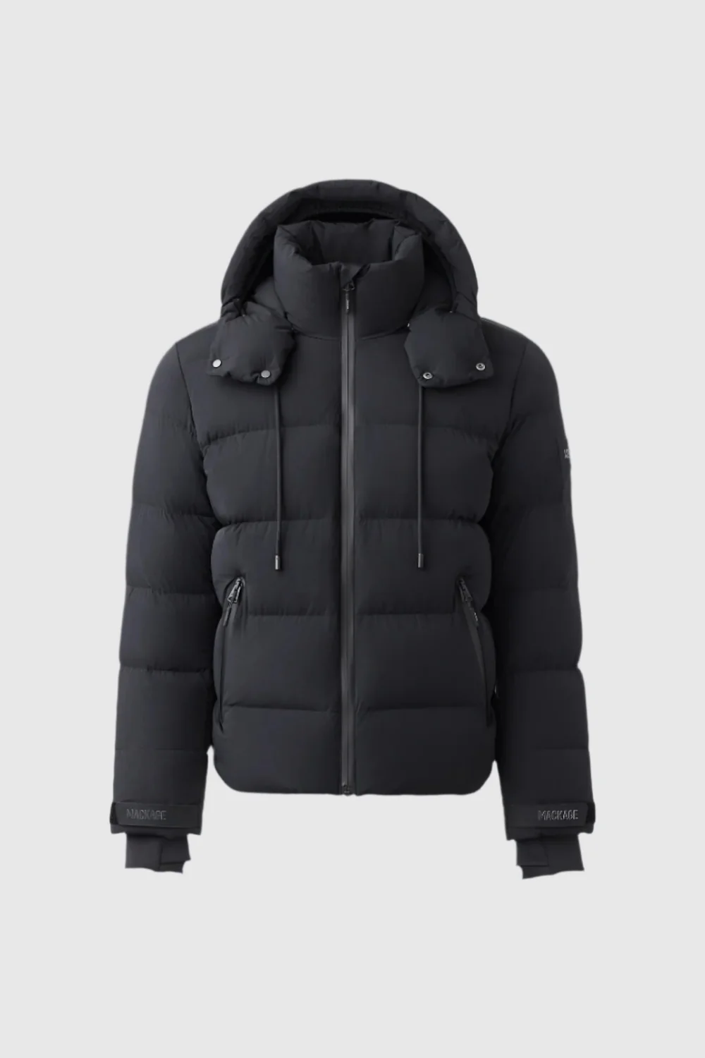 Le manteau de ski en duvet léger durable certifié CRS pour hommes SAMUEL-SKI Mackage présente un capuchon amovible à boutons-pression avec une visière coupe-vent à cordon coulissant ajustable. Conçu pour le confort grâce à sa confection en tissu extensible, ce manteau de coupe classique peut être adapté en fonction de la température, grâce à un cordon coulissant à l’ourlet et à des poignets à fermeture de velcro ajustable. Des poches isolées à fermeture éclair à la taille lui permettent de s’adapter à toutes conditions. Un essentiel mis à jour, pour une performance de ski optimale en toute condition.