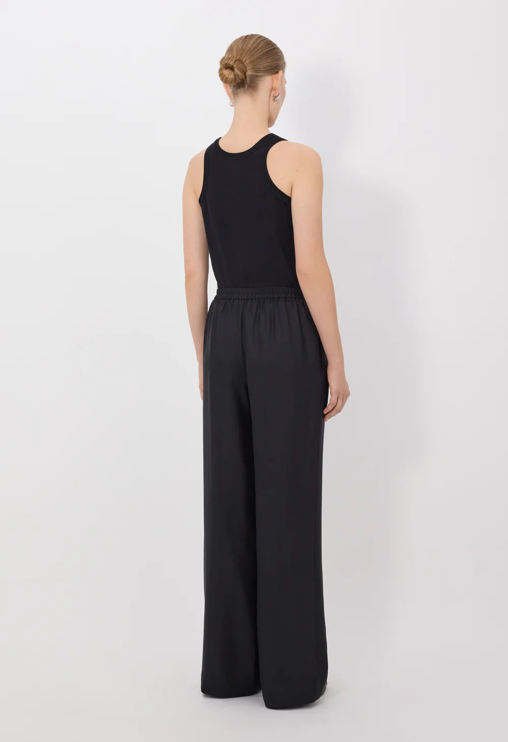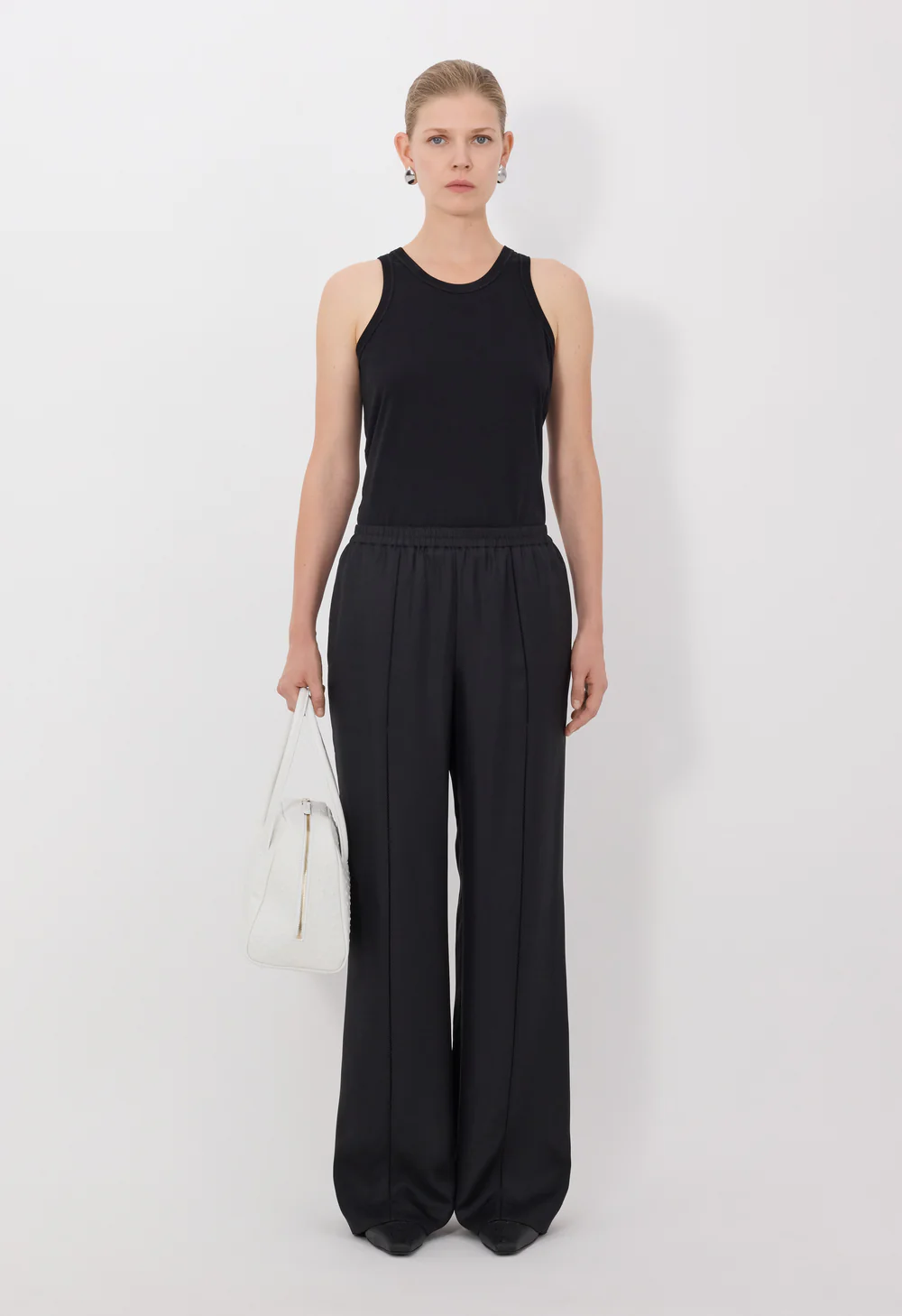 Ce pantalon LARS de Loulou de Saison est réalisé en sergé de soie. Sa coupe ample et sa taille mi-haute se complètent d’une ceinture élastique et de points décoratifs façon artisanal sur le devant, faisant de lui une pièce aussi confortable et facile à porter que sophistiquée.