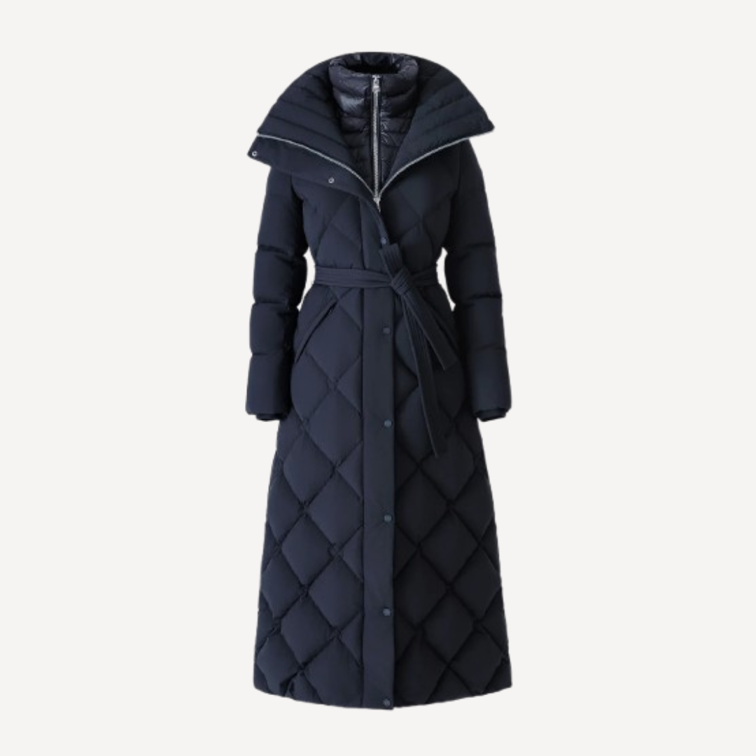 Le manteau long à ceinture LAURELLA présente une bourre en duvet certifié GRS. Doté d’un plastron amovible en duvet léger, d’un matelassage à motif diamant et d’un col évasé, il offre style raffiné et performance polyvalente. Les poignets coupe-vent fournissent une protection additionnelle, alors que l’aération aux aisselles procure un confort parfait pour les journées plus douces.