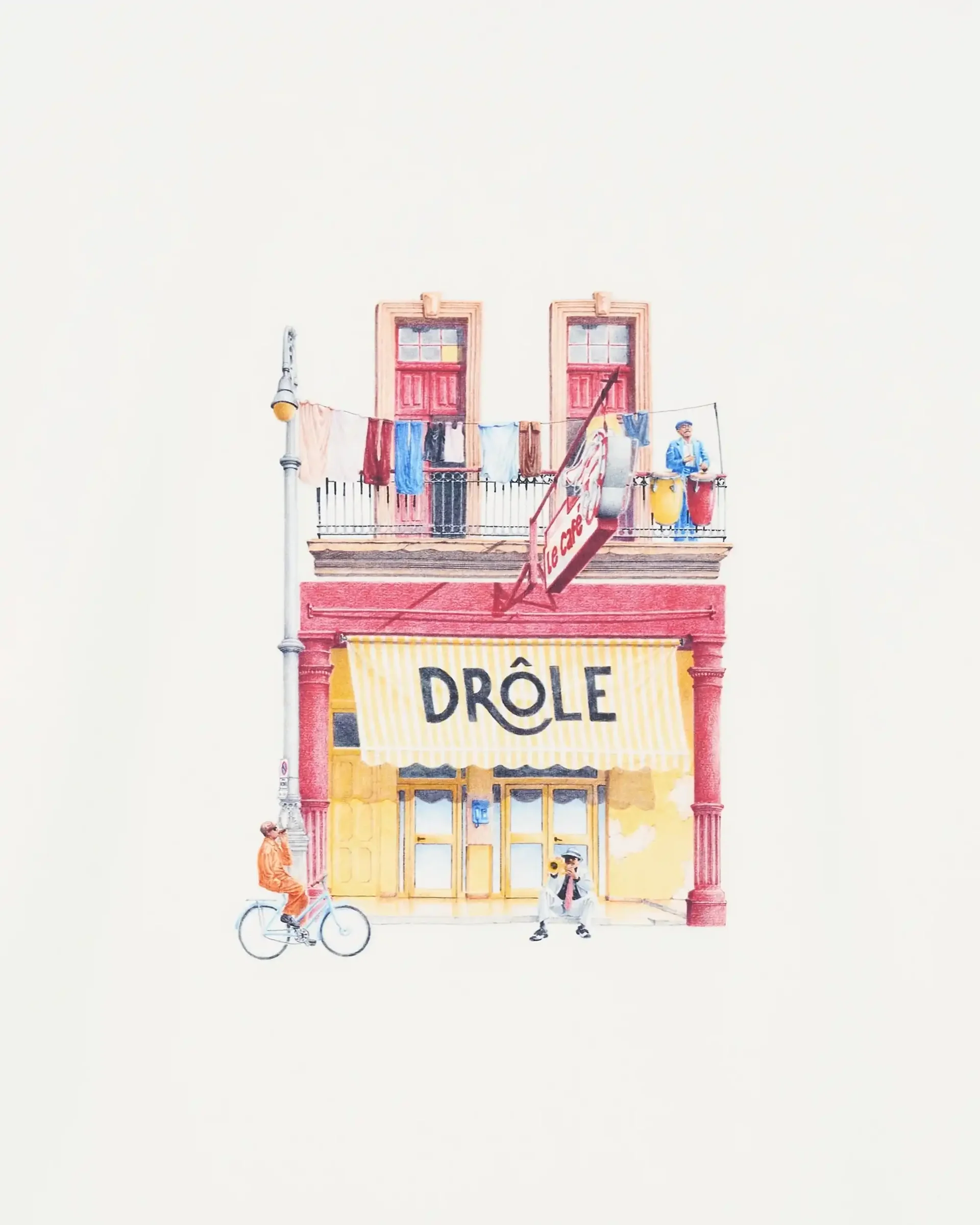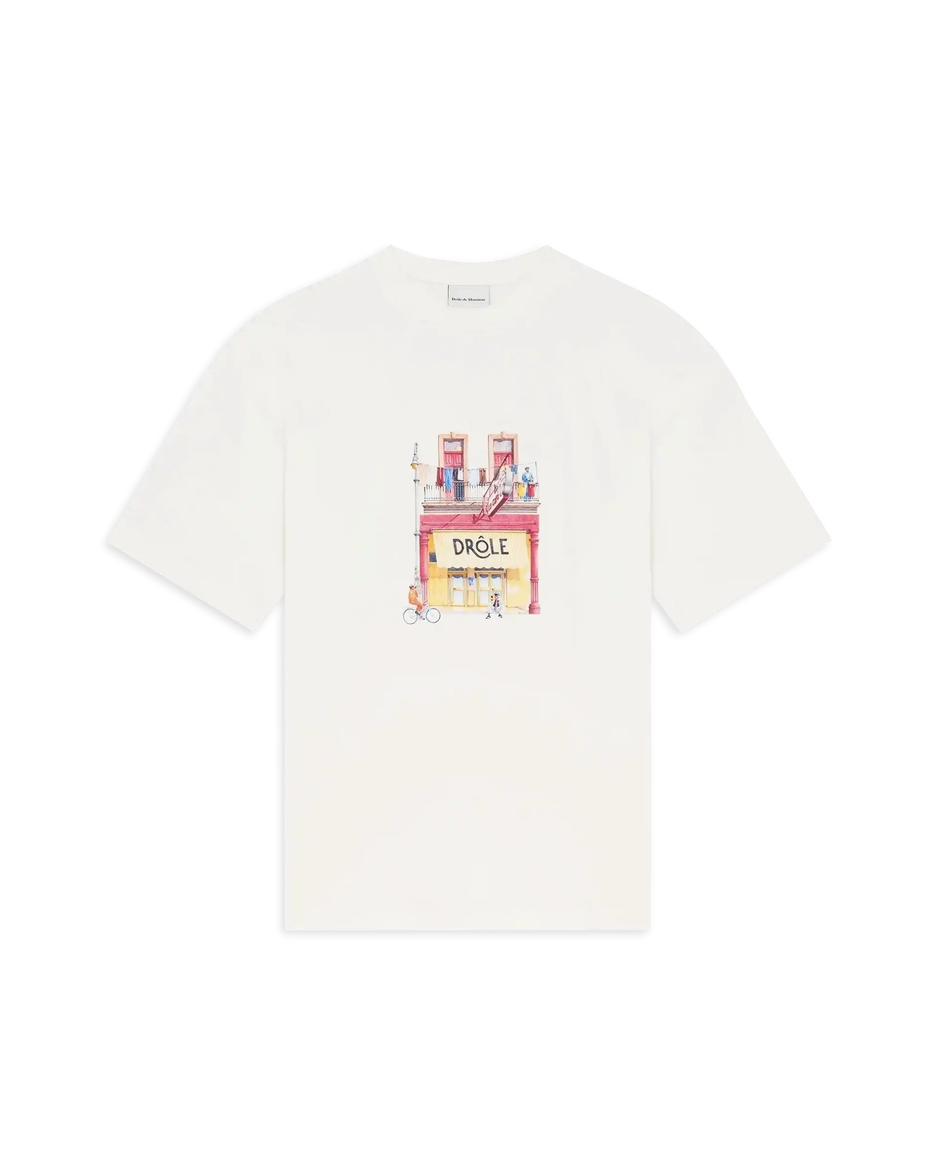 Ce tee-shirt blanc cassé signé Drôle de Monsieur, est orné d’une impression café à l’avant et d’un col en bord-côtes.