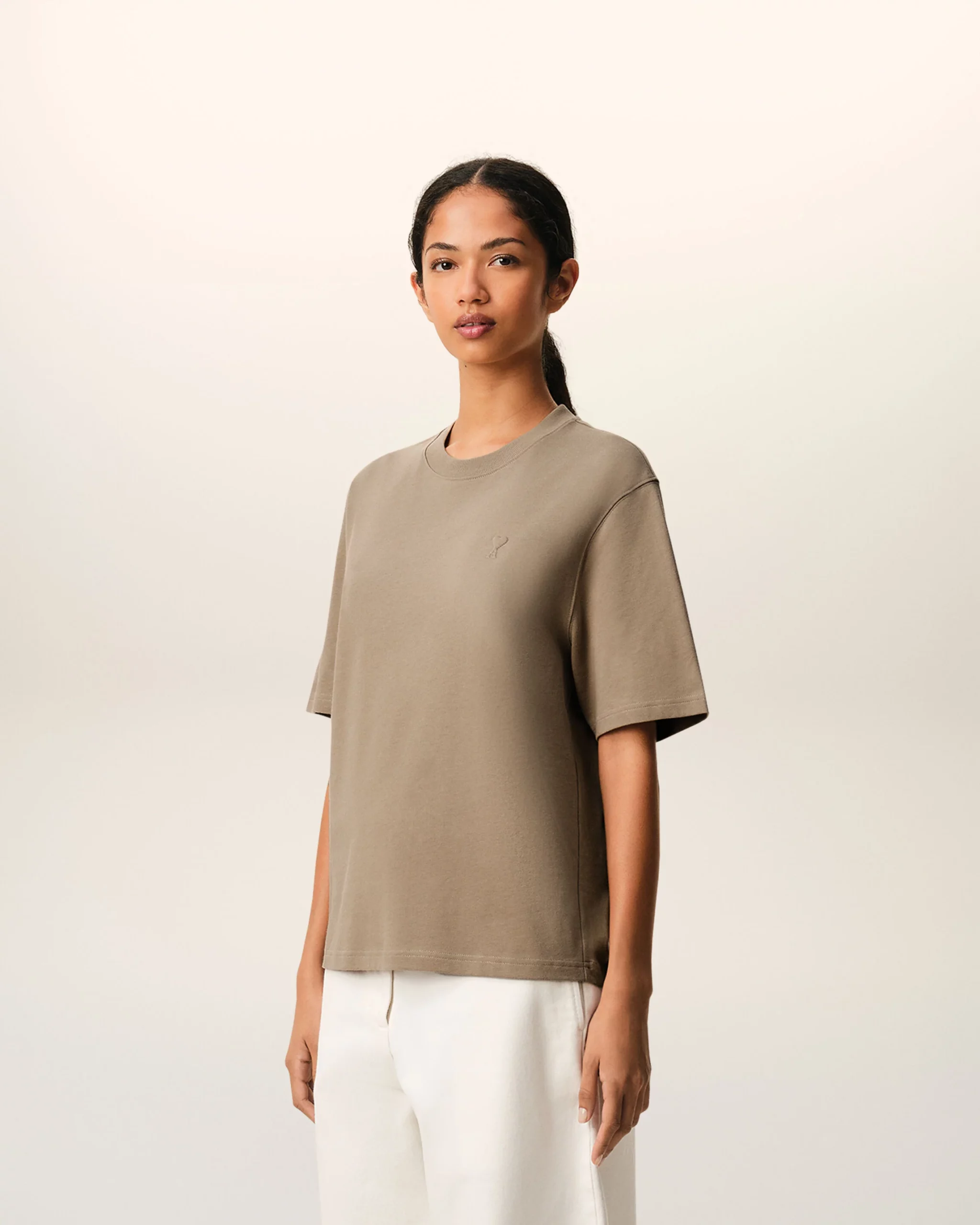 Tee-shirt manches courtes beige AMI PARIS