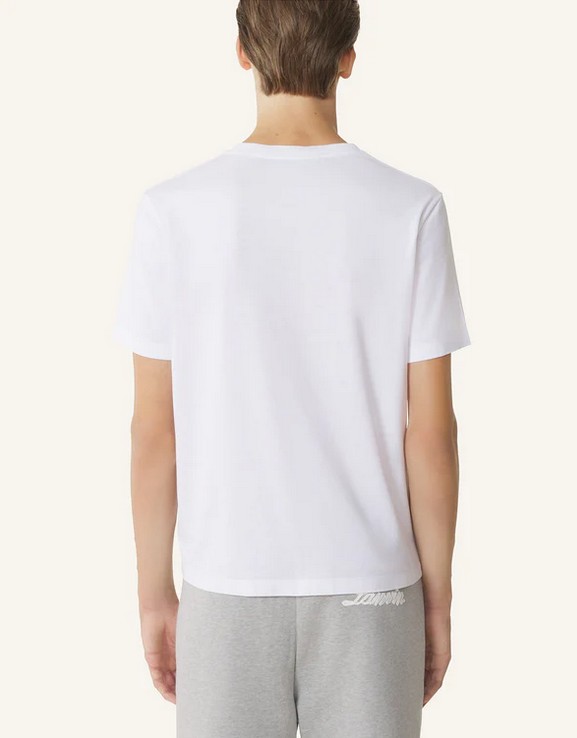 Ce tee-shirt est orné du logo Lanvin, brodé dans un ruban de coton contrasté qui apporte une touche élégante et intemporelle à une tenue décontractée. Cette signature emblématique de la Maison rend hommage à Jeanne Lanvin, qui voyait le ruban comme un symbole de l’amour entre une mère et sa fille. Il se porte aussi bien avec un jean qu’avec un jogging.