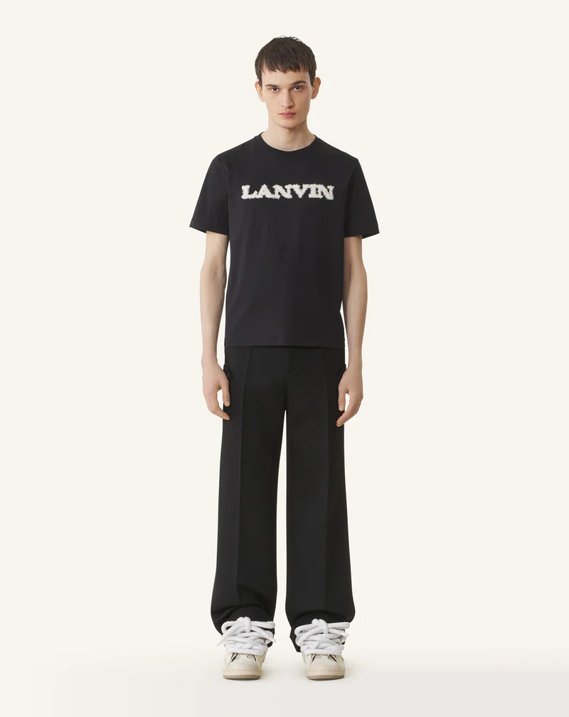 Le logo Lanvin qui orne ce tee-shirt est réalisé en peau lainée, pour apporter un détail à la fois moderne et élégant à la pièce. Sa coupe confortable est idéale pour une tenue de jour décontractée
