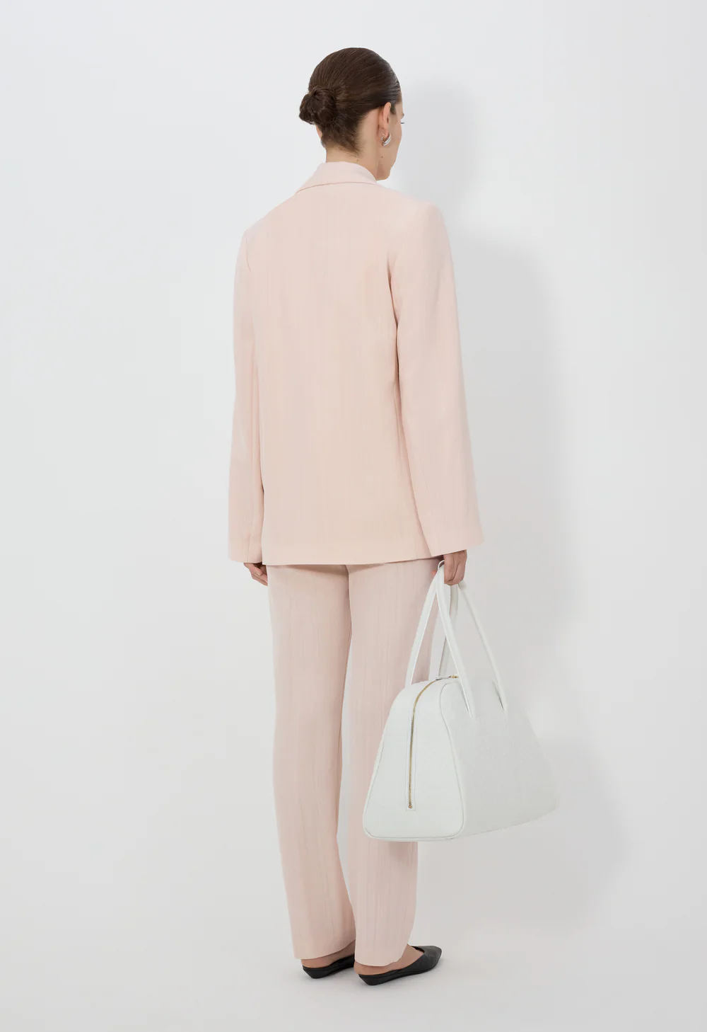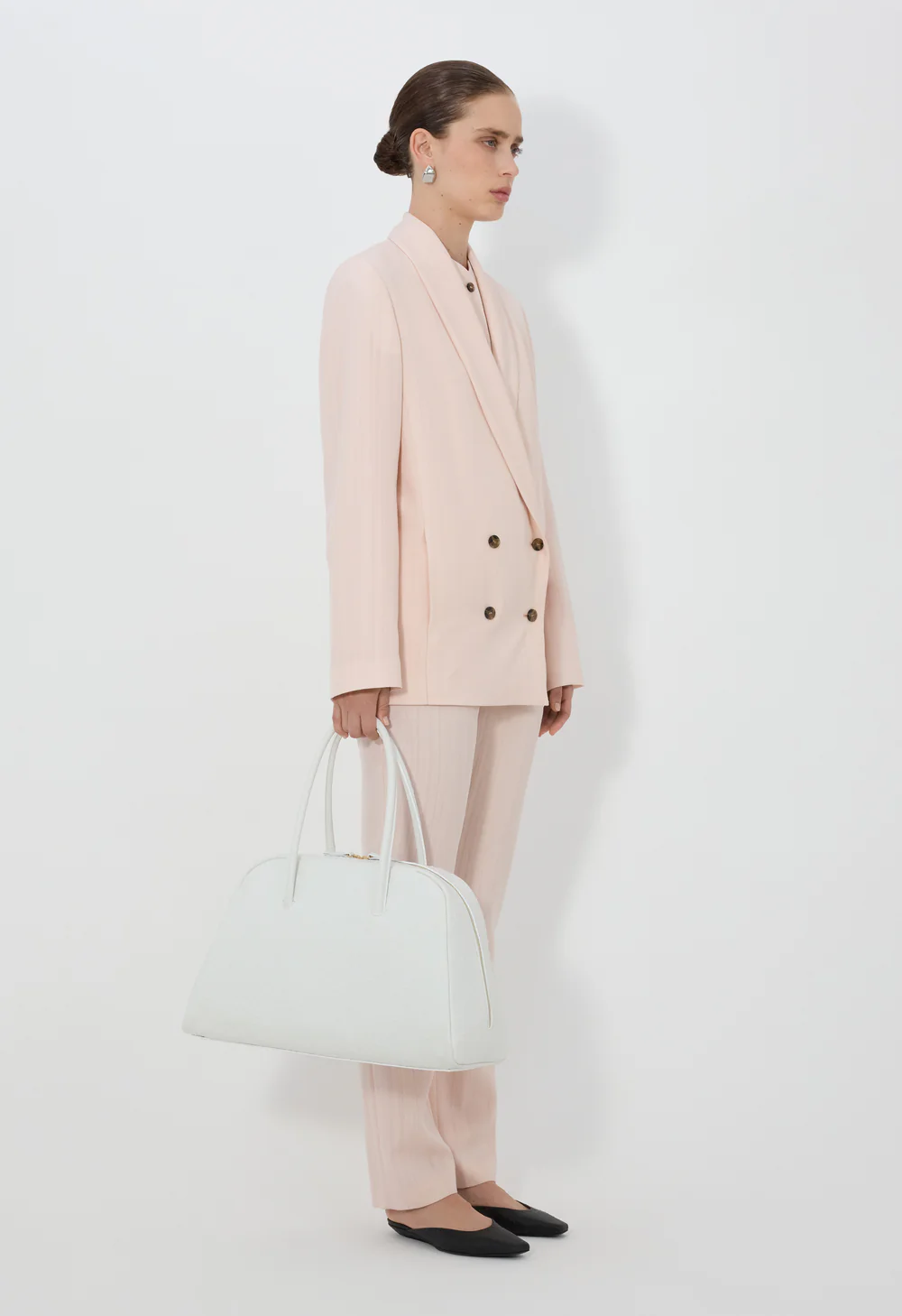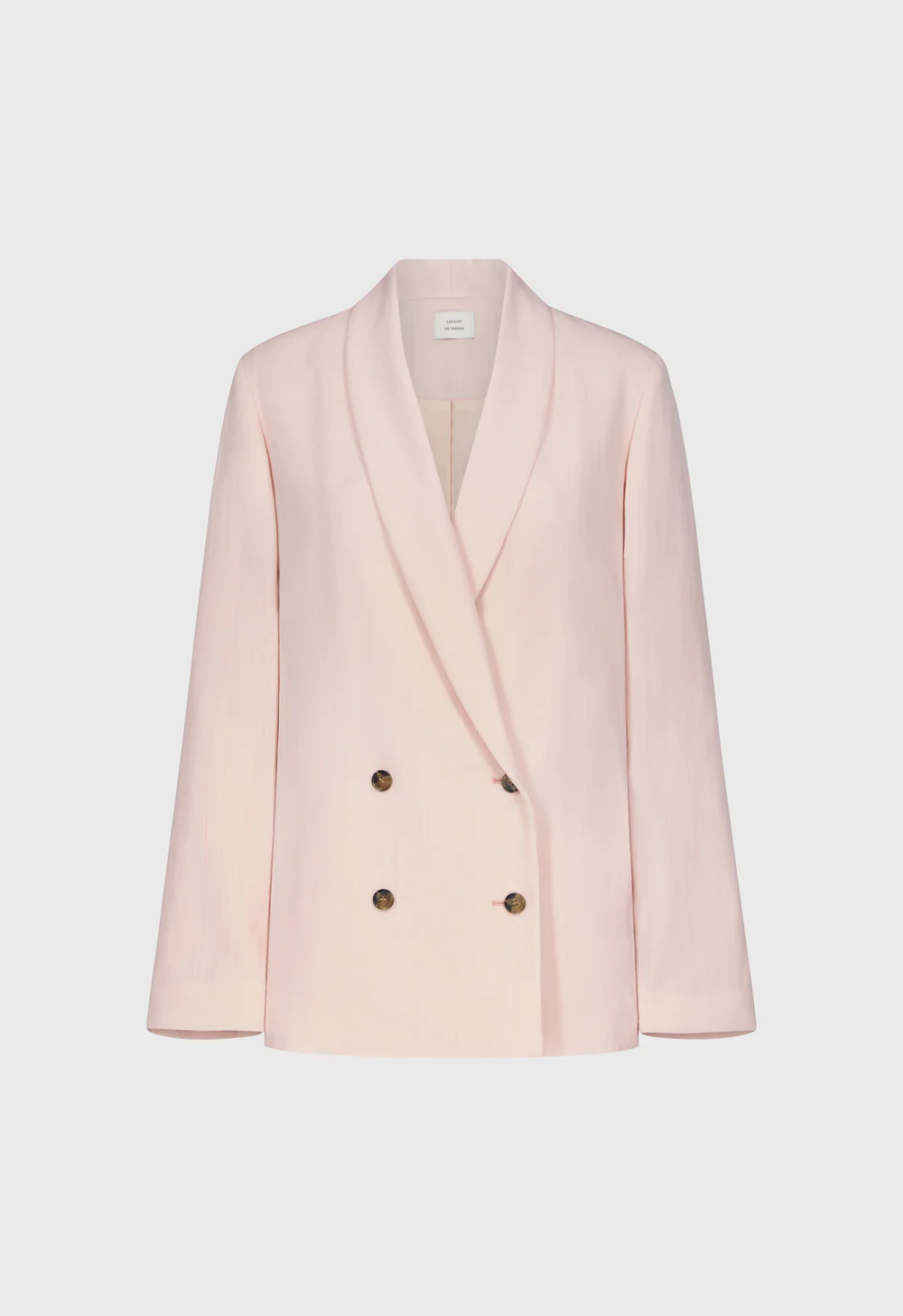 Cette veste Loulou de Saison est réalisée en mélange de viscose et laine au toucher sec. Elle présente une coupe oversize et des détails intemporels, dont un col châle et un devant à double boutonnage.